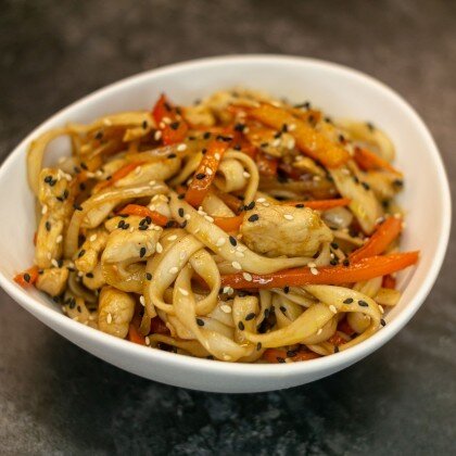 Удон с курицей и овощами